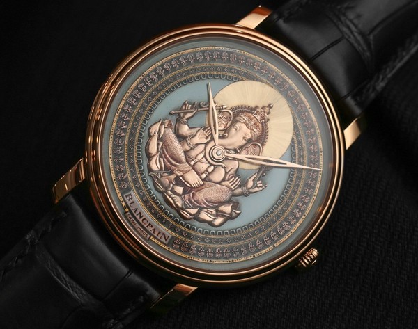 Blancpain không phải là một thương hiệu quá xa lạ đối với những ai đam mê đồng hồ mang phong cách nghệ thuật và tinh xảo. Hãng đồng hồ lâu năm đến từ Thụy Sĩ mới đây đã hợp tác với các thợ kim hoàn tại Nhật Bản để cho ra mắt bộ sưu tập Villeret Shakudo sử dụng công nghệ hợp kim và chạm khắc đến từ xứ sở hoa anh đào. Villeret Shakudo bao gồm hai mẫu, và mỗi mẫu chỉ có một chiếc duy nhất được sản xuất, với tên gọi lần lượt là Ganesh và Coelacanth. Trong đó, Ganesh được đặt tên theo Thần Ganesha, vị thần đầu voi, mình người được tôn kính tại Ấn Độ còn Coelacanth là một loài cá vây tay cổ đại hiếm gặp.